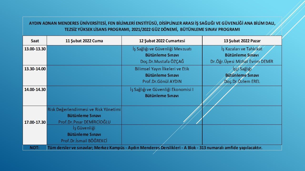 İSG Anabilim Dalı Bütünleme Sınav Tarihleri