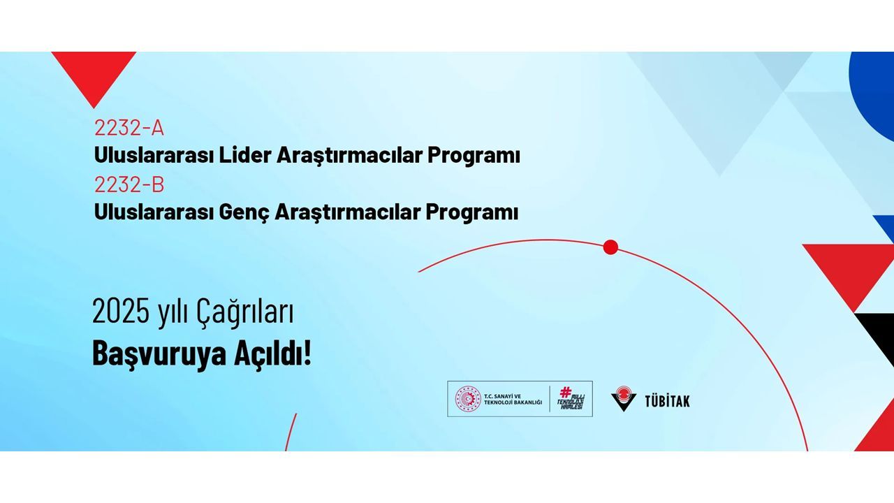 Türkiye Bilimsel ve Teknolojik AraÅŸtırma Kurumu (TÜBİTAK), Türkiye’nin bilim ve teknoloji alanında öncü ülke olma hedefi doÄŸrultusunda yürütülecek projelere katkı saÄŸlamayı sürdürüyor. Alanlarında yaptıkları üst seviye bilimsel ve teknolojik çalışmalar ile öne çıkan ve yurt dışında çalışma deneyimine sahip nitelikli araÅŸtırmacıları Türkiye’ye gelmeleri için teÅŸvik etmek amacıyla baÅŸlatılan 2232-A Uluslararası Lider AraÅŸtırmacılar Programı ve 2232-B Uluslararası Genç AraÅŸtırmacılar Programı 2025 yılı çaÄŸrıları baÅŸvuruya açılmıştır.