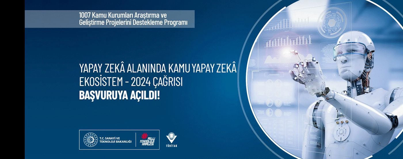 Ulusal Yapay Zekâ Stratejisi doğrultusunda kamu kurum ve kuruluşlarının ihtiyaç duyduğu yapay zekâ çözümlerinin geliştirilmesi, yapay zekâ alanındaki bilgi birikiminin bu çözümler için kullanılması ve yaygınlaştırılması amacıyla TÜBİTAK Kamu Kurumları Araştırma ve Geliştirme Projelerini Destekleme Programı (1007 Programı) kapsamında T.C. Cumhurbaşkanlığı Dijital Dönüşüm Ofisi Başkanlığının (CBDDO) müşteri kurum olarak yer aldığı “Kamu Yapay Zeka Ekosistemi - 2024” başlıklı çağrı başvuruya açıldı.