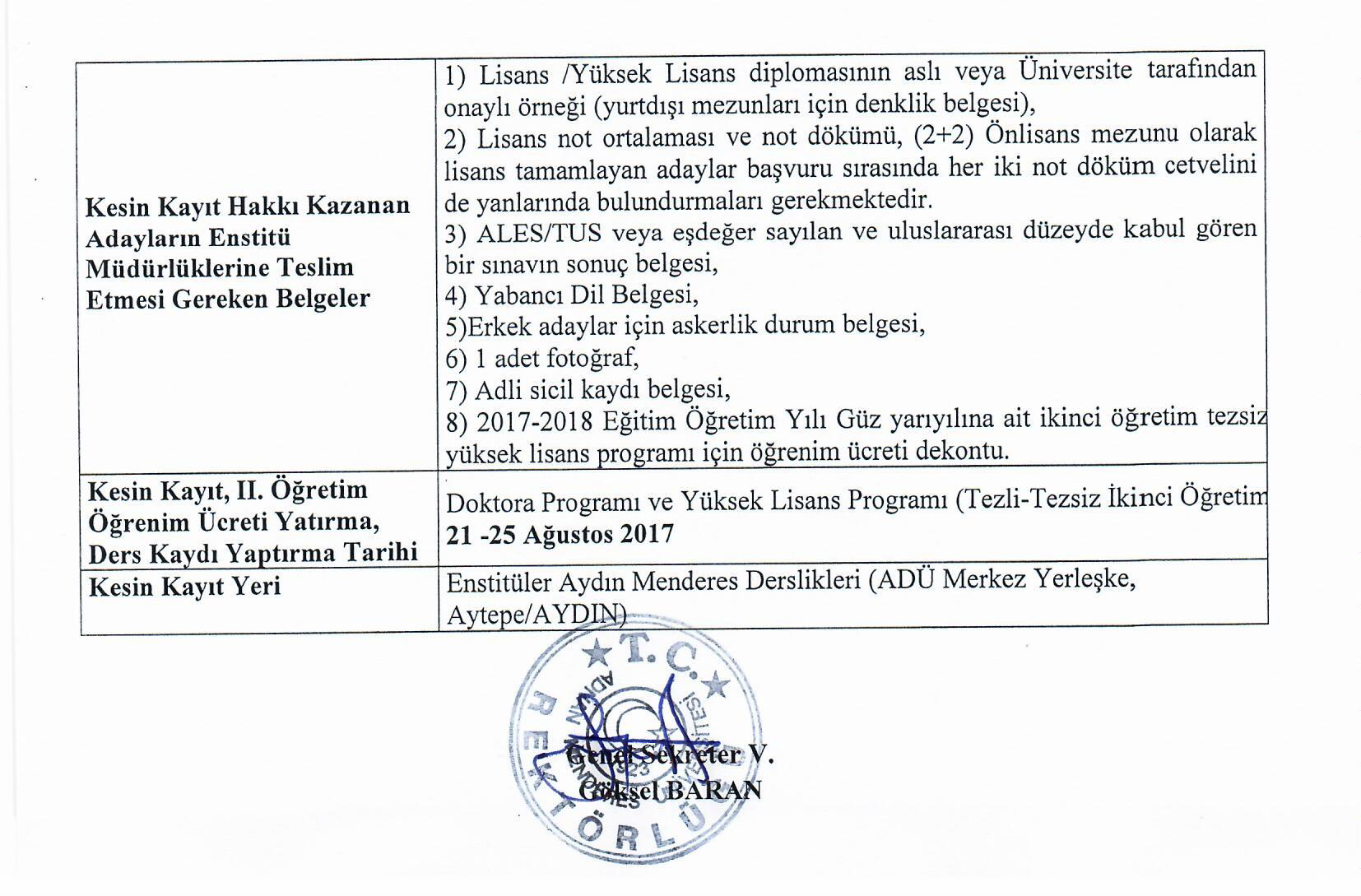 KESİN KAYIT HAKKI KAZANAN ADAYLARIN ENSTİTÜ MÜDÜRLÜKLERİNE TESLİM ETMESİ GEREKEN BELGELER