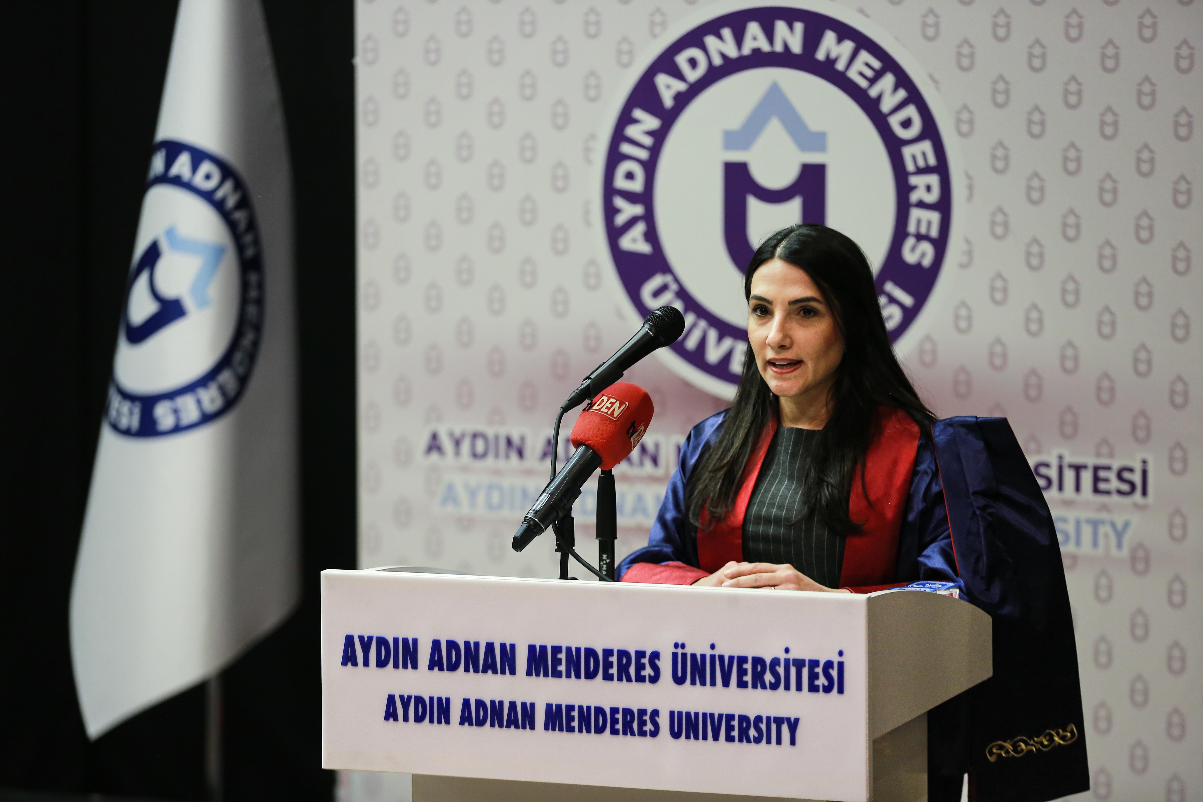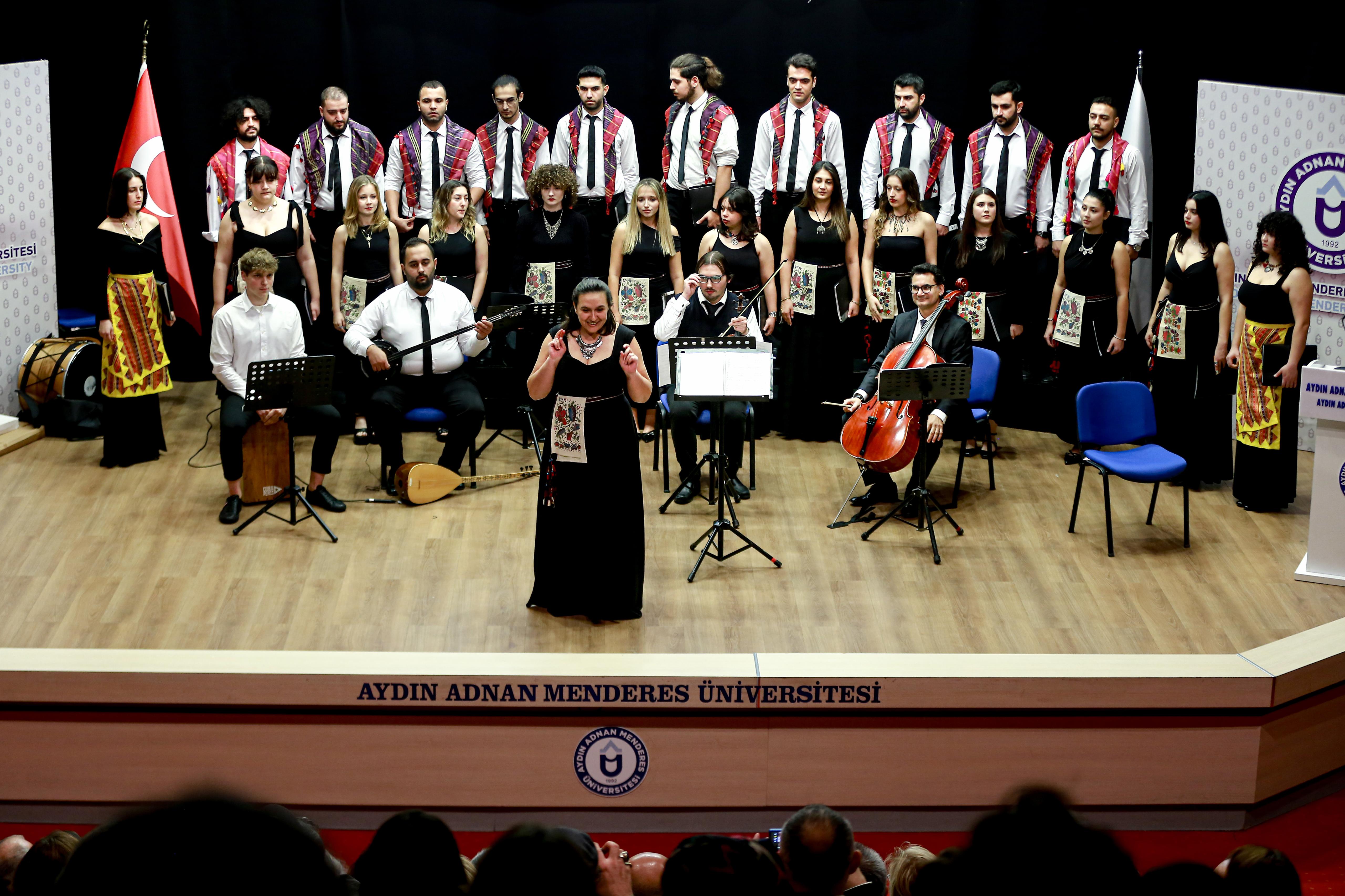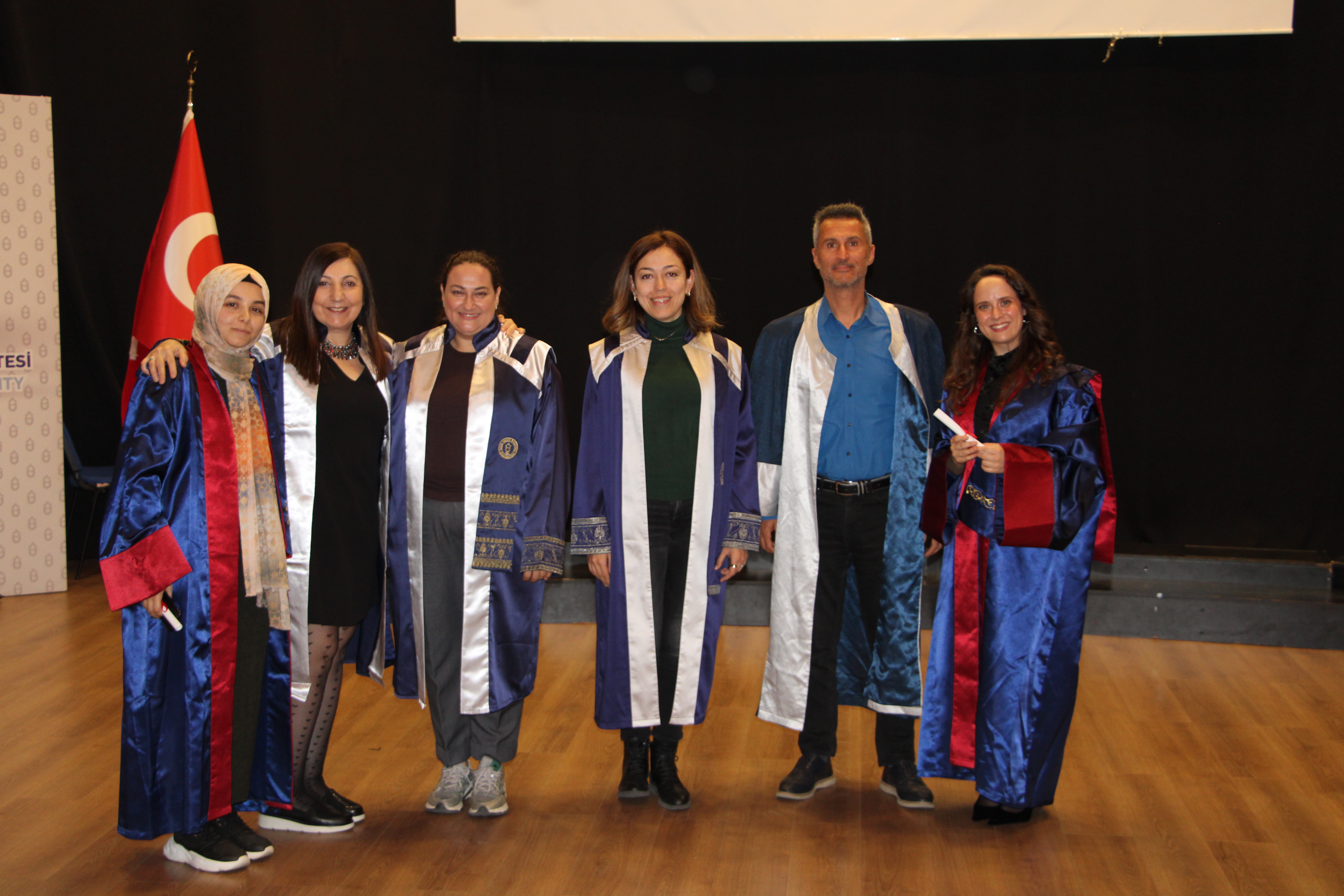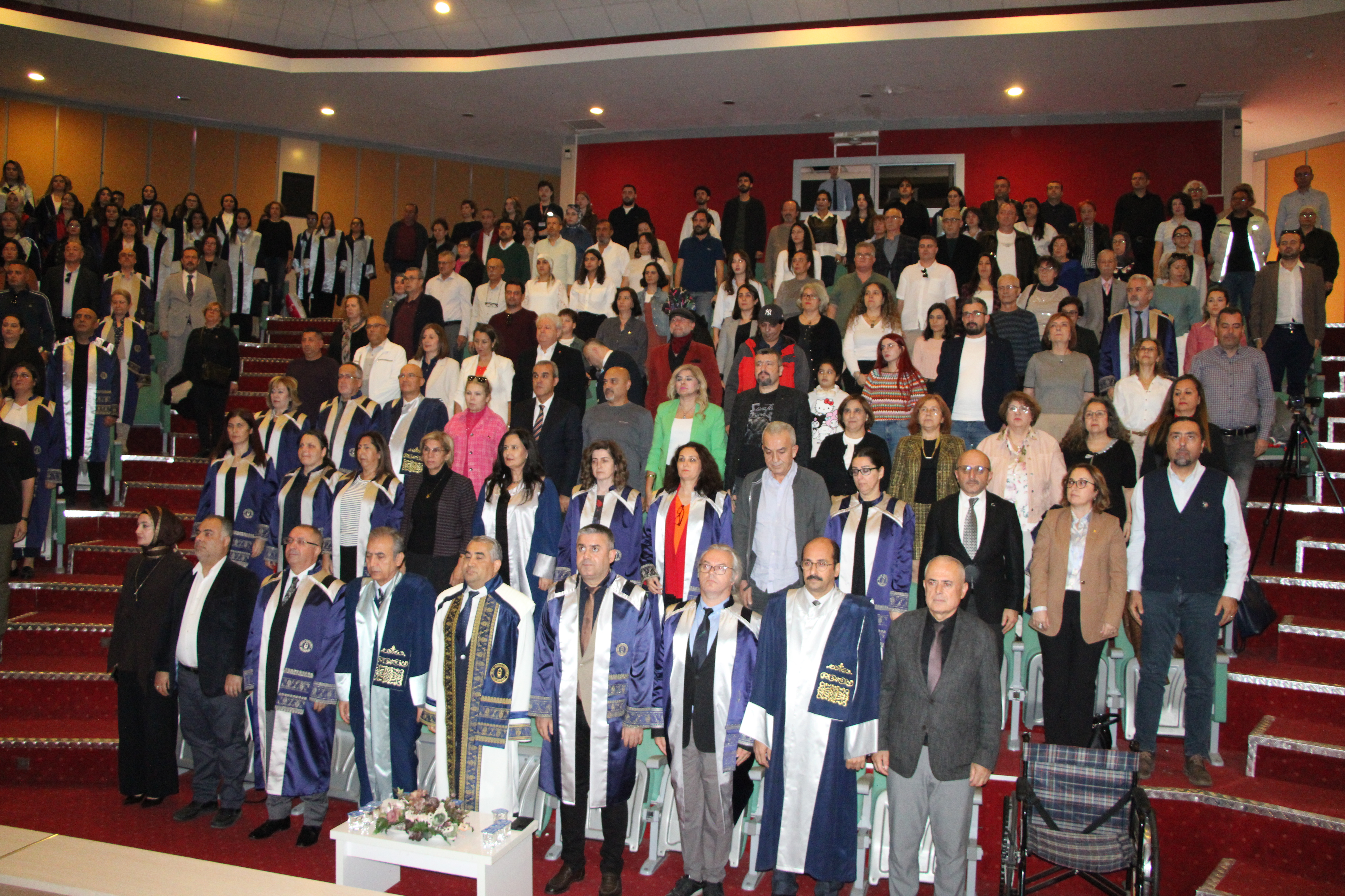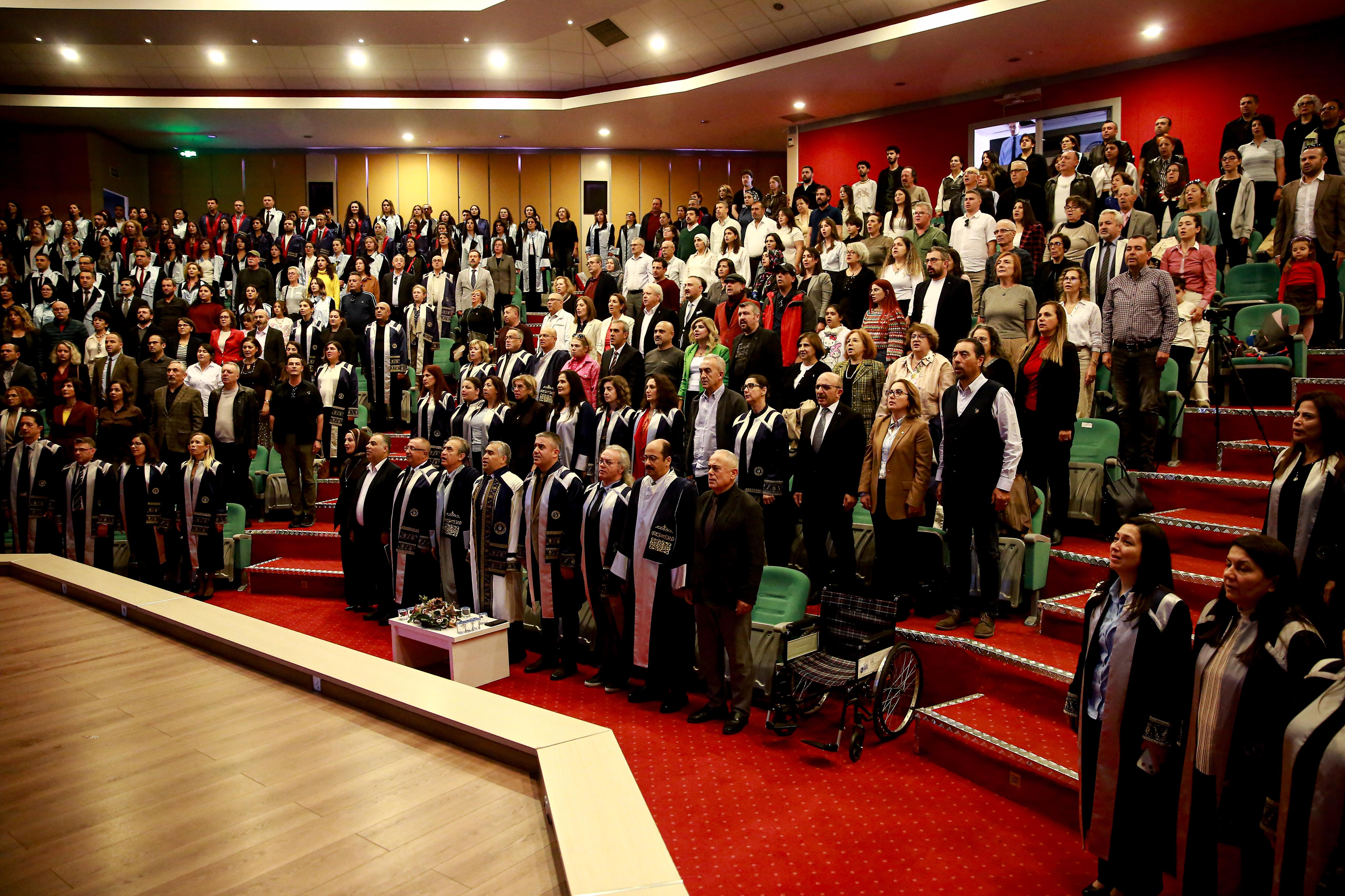 Saygı DuruÅŸu ve İstiklal Marşı ile baÅŸlayan program, Üniversitemiz Çok Sesli Korosu’nun müzik dinletisiyle devam etti. Törende mezunlar adına Dr. Dilek Canlar Akar, enstitüler adına ise Sosyal Bilimler Enstitüsü Müdürü Prof. Dr. Ahmet Toksoy konuÅŸma yaptı.